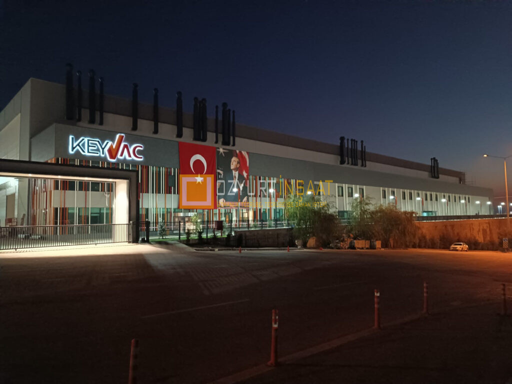 Bu proje, firmamızın endüstriyel yapıların inşaatı konusunda uzmanlığının bir kanıtıdır. Müşterimiz Keyvac ile olan başarılı işbirliğimiz, karşılıklı güven ve memnuniyet üzerine kurulmuştur.